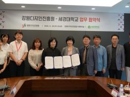 강원디자인진흥원과 세경대학교는 8월 28일 강원디자인진흥원 대회의실에서 ▲ 도내 관광산업 활성화와 ▲ HiVE사업단과의 평생직업교육 활성화 및 지역 내 우수인재 양성을 목적으로 두 건의 업무협약을 체