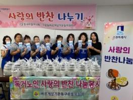 수원시 권선구 구운동 바르게살기운동위원회에서는 지난 28일 관내 홀몸어르신 등 취약세대 26가구에 사랑의 밑반찬을 직접 조리하여 전달하며 이웃사랑을 전했다.이날 위원 10명이 참여하여 반계탕, 고등어