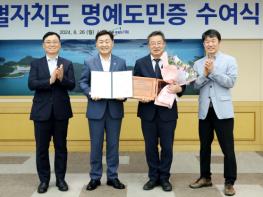 전북특별자치도는 26일 도청 회의실에서 김관영 도지사가 김진상 전 KIST 전북분원장에게 명예도민증을 수여했다고 밝혔다.김진상 전 분원장은 지난 2020년 8월부터 2024년 4월까지 KIST전북분원장으로 재임