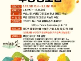 부산진구는 오는 9월부터 12월까지 평생학습공방 하반기 수업을 운영한다고 밝혔다.본 사업은 플로리스트, 캘리그라피, 유리공예, 은공예, 터프팅, 떡·디저트, 실크스크린 등 다양한 영역의 17개 공방과 함