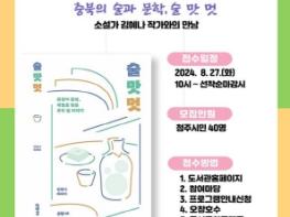 청주오창호수도서관은 오는 9월 4일 오전 10시에 김혜나 작가를 초청해 ‘시인의 눈물에는 무엇이 들어있을까? - 충북의 술과 문학, 술 맛 멋’이라는 주제로 강연을 개최한다고 26일 밝혔다. 김혜나 작가는