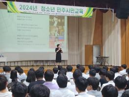 한국자유총연맹영주시지회에서는 23일 한국국제조리고등학교 강당에서 ‘2024년 청소년 민주시민 교육’을 개최했다.‘통일을 준비하는 청소년의 자세’를 주제로 열린 이번 교육에는 새터민이자 한국자유총