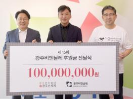 (재)광주비엔날레는 22일 시청 접견실에서 ㈜광주신세계로부터 제15회 광주비엔날레 성공개최 및 문화예술 발전 후원금 1억원을 전달받았다.이날 전달식에는 광주비엔날레재단 이사장인 강기정 광주시장과