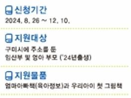 구미시립중앙도서관은 경상북도와 함께 저출생과 전쟁 100대 실행 과제 실천을 위해 '2024년 초보 엄마·아빠 북돋움 책선물 사업'을 시행한다.이번 사업은 부모에게 필요한 정보를 담은 도서를 선물하여 출