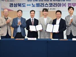 경상북도는 21일 경북도청에서 경상북도와 노벨리스코리아㈜ 간‘청년 인재 양성 및 지역 발전을 위한 업무협약(MOU)’을 체결했다.협약식에는 이철우 경북도지사, 박종화 노벨리스코리아㈜ 대표이사 등이