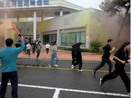 음성군은 21일 대소국민체육센터(대소면 태생리)에서 을지연습 실제훈련을 실시했다. 이번 훈련은 드론에 의한 테러로 공공시설에 화재가 발생한 것을 가정해 화재 초기대응 단계부터 인명구조 및 피해·화재
