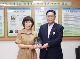 “퇴임을 맞아 새로운 출발을 응원하고자 마련한 자리인 만큼 앞으로 더욱 건강하고 행복한 일상을 보내시길 기원합니다” 강수현 양주시장이 21일 오전 교직 생활을 마무리하는 관내 학교장 2명에게 감사패