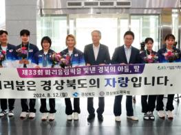 경상북도는 12일 제33회 파리올림픽에서 기대 이상의 성적을 거둔 경북 선수단을 맞아 도청 직원들의 뜨거운 환호 속에서 환영식을 열었다.이철우 도지사, 김학홍 행정부지사, 양금희 경제부지사를 비롯한
