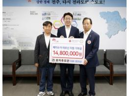 전주시는 12일 전주시청에서 정진 효자추모관 회장 등이 저소득 폐지 수거 어르신 74명에 1480만원 상당의 온누리상품권을 기부했다고 밝혔다. 효자추모관 관계자들은 연일 35도 이상의 기록적인 폭염이 지