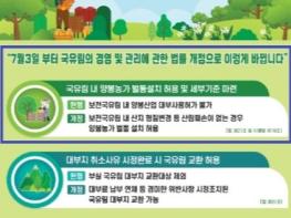 동부지방산림청은 2024년 7월 3일자로 개정된 '국유림의 경영 및 관리에 관한 법률'로 국유림 내 양봉농가 대상 벌통 설치가 가능하다고 밝혔다. 그동안 보전국유림 내에서는 벌통 설치가 불가했으나 양