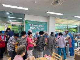 나주시 영산동주민자치위원회가 회원 12명이 참여해 지난 9일 나주시노인복지관에서 지역 내 어르신들을 위한 삼계탕 무료 배식 봉사활동을 펼쳤다고 12일 밝혔다.나주시노인복지관(관장 이복찬)이 주관하고