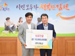 김천복지재단은 지난 13일 (주)대산(대표 이영목)에서 성금 1,000만 원을 전달받았다고 밝혔다. 김천시 개령면에 있는 ㈜대산은 농산물 유통 전문기업으로, 다양한 농산물을 대형마트와 쿠팡에 공급하고 있