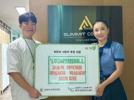 남양주시 별내동 소재 ㈜써밋컴퍼니는 지난 9일 관내 취약계층을 위한 세제 50개를 남양주시 사회복지관 북부희망케어센터에 전달했다.이날 전달된 세제는 47만 5,200원 상당의 주방세제·욕실세제로 구성됐