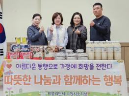 수원시 장안구 조원1동은 8일, 비영리단체 수원시 소리샘 봉사단과 저소득층 독거어르신 20가구를 위한 사랑의 물품 나눔 행사를 진행했다.소리샘 봉사단은 식혜, 라면 및 밀키트로 이루어진 물품 꾸러미 20