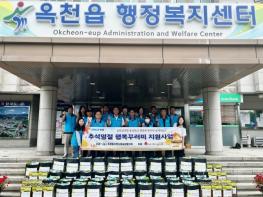 옥천군에서는 추석 명절을 맞아 취약계층 가구에 식품, 생필품 등을 지원하는 행복꾸러미 지원이 한창이다.옥천읍지역사회보장협의체는 공동모금회 행복나눔 연합모금 매칭금 사업인 ‘추석명절 행복꾸러미