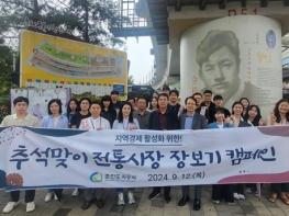 춘천도시공사는 12일 추석 명절을 맞이하여 지역경제 활성화를 위한 임직원 전통시장 장보기 캠페인을 진행했다.이날 직원들은 풍물시장을 방문하여 춘천사랑상품권, 온누리상품권 사용을 통해 제수용품, 식