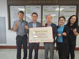 남양주시 진건퇴계원행정복지센터는 10일 진관산업단지 기업인회(회장 유상일)에서 후원금 100만 원을 진건읍 지역사회보장협의체에 기탁했다고 밝혔다.이날 전달된 후원금은 지역의 저소득층 및 장애인 등