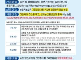이천시는 오는 9월 23일부터 ‘2024년 농민기본소득’ 추가신청 접수를 한다고 전했다.농민기본소득은 9월 23일부터 10월 11일까지 읍면동 행정복지센터(사무소)를 방문하여 신청하거나 농민기본소득 통합지