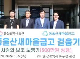 동울산새마을금고(이사장 김치규)는 9월 5일 오전 9시 동구청 광장에서 500만원 상당의 어르신 보행기 31대를 동구청에 전달했다.이번 전달식은 동울산새마을금고의 제2회 동울산새마을금고 걸음 기부 행사