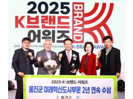 울진군이 2월 19일 서울 더플라자호텔에서 열린‘2025 K-브랜드 어워즈’에서 미래혁신도시 부문 대상을 수상했다. TV조선이 한국 대표 브랜드의 우수성을 알리고 응원하기 위해 제정된 ‘2025 K-브랜드 어