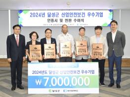 달성군은 대구상공회의소와 함께, 지난 5일 개최한‘2024년 달성군 산업안전보건 우수기업 인증서 및 현판 수여식’에서 안전한 일터 만들기에 솔선수범한 달성군 관내 우수기업에 인증서와 현판을 수여했다