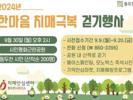 동두천시 치매안심센터는 제17회 치매극복의 날(9월 21일)을 기념해 오는 9월 30일 오후 2시 시민평화 근린공원에서 ‘한마음 치매극복 걷기행사’를 실시한다.이번 행사는 치매 예방에 좋은‘걷기’를 실천