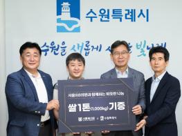 서울88의원이 3일 수원시 관내 노인복지관에 쌀 1000㎏를 후원했다. 수원시 복지여성국장 집무실에서 열린 전달식에는 김인배 수원시 복지여성국장, 정혜두 서울88의원 대표원장, 조성호 밤밭노인복지관장