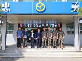이재영 증평군수가 3일 민족 대명절인 추석을 앞두고 지역 내 군부대를 찾아 군 장병을 위문했다.이날 이 군수는 제37보병사단을 방문해 지역화폐인 증평사랑으뜸상품권을 위문품으로 전달하며 군 장병들과