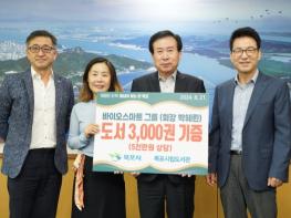 목포시립도서관이 올해 확보한 총 4,500여 권의 기증도서를 뜻깊게 활용할 예정이다. 목포시립도서관은 지난 21일 바이오스마트그룹(회장 박혜린)이 기증한 도서 3,000권을 그룹 계열 출판사인 시공사로부터