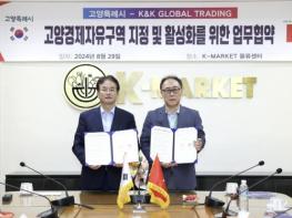 이동환 고양특례시장은 지난 29일 베트남 하노이에 위치한 K-마켓을 방문해 K·K글로벌트레이딩과 고양경제자유구역 지정 및 활성화를 위한 업무협약을 체결했다.K-마켓은 2002년 설립돼 베트남 전역에 140개