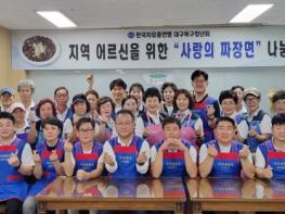 한국자유총연맹 대구북구청년회는 지난 8월 27일 선린복지관에서 지역 어르신 160명을 모시고 짜장면 나눔 봉사활동을 펼쳤다.이날 행사는 각 동 한국자유총연맹 청년회장들이 이른 아침 신선한 식재료를 준