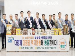 농협 함양군지부와 관내 농축협, 함양군은 29일 오전 함양군청에서 함양 쌀 소비촉진을 위한 ‘가족과 함께 아침밥 먹기 캠페인’을 전개했다.행사에는 진병영 함양군수와 함양군의회 김윤택 의장, 농협함양