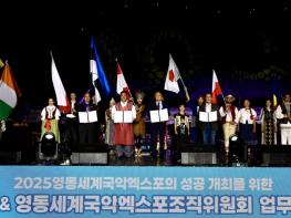 영동세계국악엑스포 조직위원회는 10일 국제민속축전기구[CIOFF]와해외참가국 유치를 위한 업무협약을 체결했다. 이날 협약식에는 엑스포 조직위원장인 김영환 충북도지사와 집행위원장인 정영철영동군수,