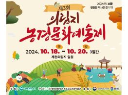 제3회 의림지 농경문화 예술제가 오는 10월 18일부터 20일까지 3일간 의림지 일원에서 개최된다. 이번 행사는 제천문화재단 계획공모 관광사업단 주관으로 제천시가 주최하고 문화체육관광부와 충청북도가