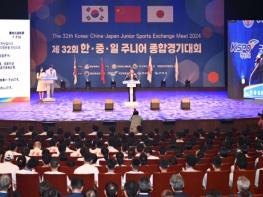 경상북도는 26일 구미문화예술회관 대공연장에서 제32회 한중일 주니어 종합경기대회 개회식을 개최했다.25일부터 31일까지 7일간 구미시에서 열리는 이번 대회는 한국과 중국, 일본 3개국 988명의 선수단이