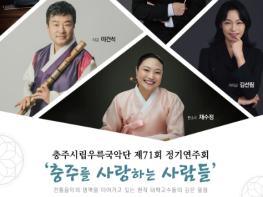 충주시립우륵국악단은 제71회 정기연주회를 오는 4월 25일 저녁 7시 30분 충주시 문화회관에서 개최한다.이번 정기연주회는 ‘충주를 사랑하는 사람들’을 주제로 그동안 우륵국악단과 함께한 수많은 협연자