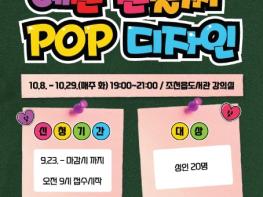 제주시 조천읍도서관은 10월 문화의 달을 맞이하여 성인을 대상으로 야간 독서문화프로그램을 운영한다. '책 타는 가을'이라는 주제로 진행되는 이번 독서문화 프로그램에서는‘예쁜 손글씨 POP 디자인’이