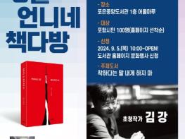 포항시는 오는 19일 저녁 7시 포은중앙도서관 어울마루에서 2024 렉쳐콘서트 ‘언니네 책다방’의 일곱 번째 시간, ‘착하다는 말 내게 하지 마’를 주제로 김강 작가 초청 강연을 진행한다.내과의사이자 책