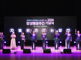 창원특례시는 3일 성산아트홀 대극장에서 2024년 양성평등주간 기념식을 개최했다.이날 기념식은 양성평등주간을 맞아 여성단체 회원들과 시민 1,000여 명이 참석했다. ‘함께 일하고 함께 돌보는 양성평등