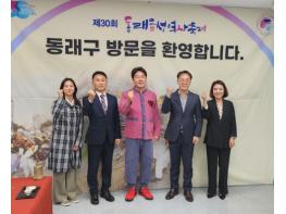 옥천군이 11일 자매도시인 부산 동래구에서 개최된 제30회 동래읍성 역사축제에 한충완 부군수를 단장으로 총 6명의 대표단이 참석했다. 이날 대표단은 구청장을 접견하고 개막식, 환담회 등에 참여해 올해