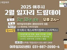 여주시는 오는 2월 26일 오후 2시 여주일자리센터(세종로 14번길 18, 중앙프라자 5층)에서 2025년 두 번째 일자리드림데이를 개최한다. 이번 행사에는 주식회사 에스씨케이컴퍼니(스타벅스)가 참가하여 음