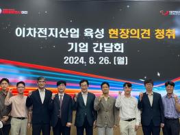 대전시는 26일 대전테크노파크 어울림플라자에서 지역 내 이차전지산업 유망기업 대표와 산업육성방안 및 애로사항 청취 등을 위한 소통 간담회를 개최했다. 이날 간담회에는 ▲알루코 ▲아이비젼웍스 ▲스