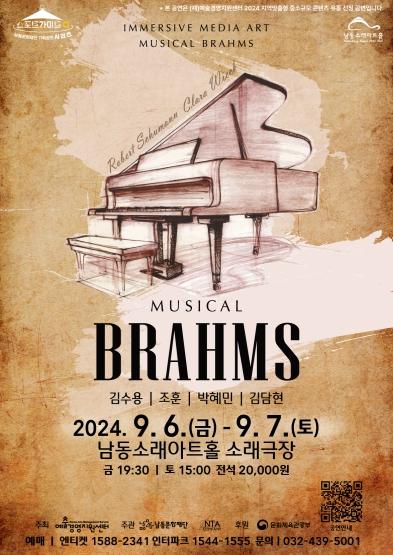 뮤지컬 ‘브람스’는 9월 6일 19시 30분과 7일 15시 남동소래아트홀 소래극장에서 전석 20,000원에 관람할 수 있다.