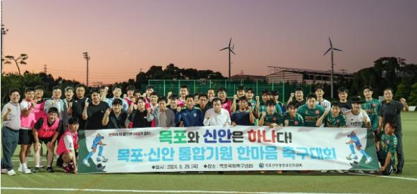 이날 축구대회는 목포?신안 통합을 기원하고 양시군 지역민의 우호를 다지기 위해 진행됐다.