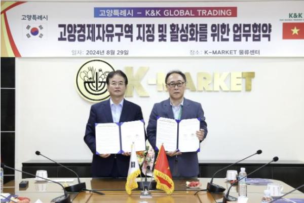 이동환 고양특례시장은 지난 29일 베트남 하노이에 위치한 K-마켓을 방문해 K·K글로벌트레이딩과 고양경제자유구역 지정 및 활성화를 위한 업무협약을 체결했다.
