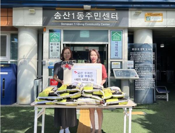 의정부시 송산1동주민센터는 8월 29일 고산수자인오늘부동산이 백미 100kg을 전달하며 지역사회를 위한 나눔을 실천했다고 밝혔다.