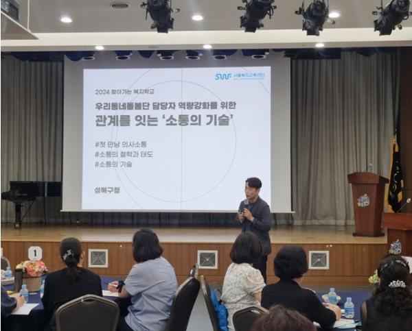 서울 성북구가 8월 28일 성북구청 4층 성북아트홀에서 지역 내 사회적 고립가구 상시 돌봄 활동을 수행하는 우리동네돌봄단 40명을 대상으로 역량강화 교육을 실시했다.