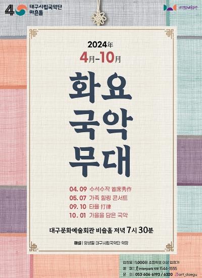 해설이 있는 ‘화요국악무대’는 대구문화예술회관 비슬홀, 오후 7시 30분 공연이며, 입장료는 1천 원이다.