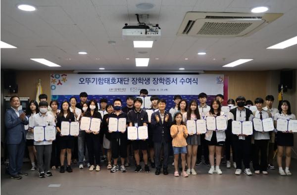 수여식에는 이병준 안양시 인재육성재단 대표이사, 김봉진 오뚜기함태호재단 차장을 비롯한 20명의 장학생 및 가족들이 참석하여 자리를 빛냈다.