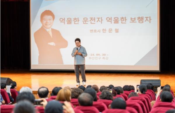 이번 강연에서는 교통사고 전문 변호사로 대중에게 널리 알려진 한문철 변호사를 초청하여 ‘교통사고, 안내고 안당하기’라는 주제로 블랙박스에 담긴 각종 사고를 통해 운전자가 갖춰야 할 안전 상식 등의 내용으로, 교통 법규에 대한 궁금증을 질의·응답하는 시간으로 진행됐다.